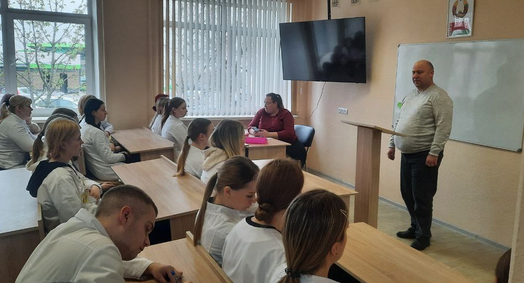 4 апреля, в преддверии основного этапа республиканской профилактической акции «Дом без насилия!», состоялась встреча учащихся первого курса медицинского отделения с заместителем председателя комиссии по делам несовершеннолетних администрации Ленинского района г. Могилева Поляк Эмилией Борисовной и специалистом ИДН Ленинского РУВД г. Могилева Змушко Юрием Николаевичем.