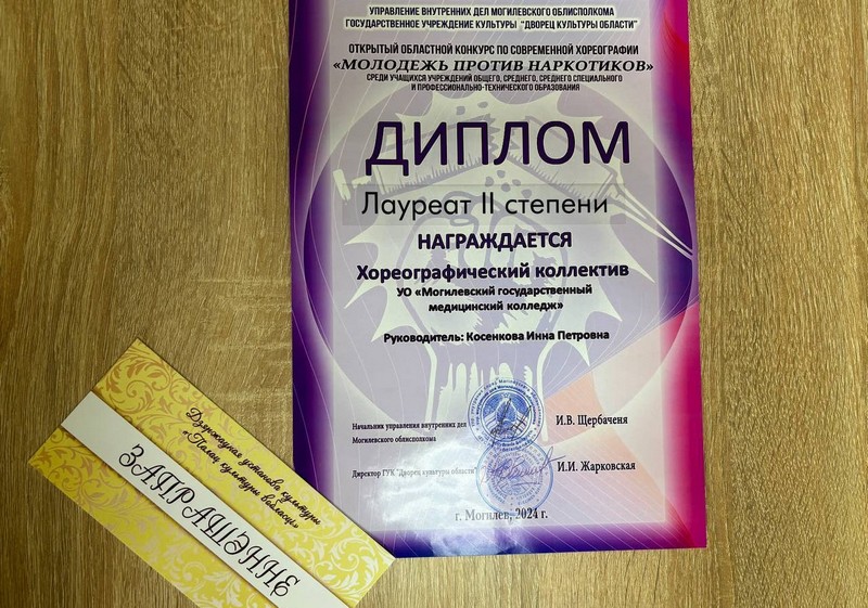 По итогам танцевальных состязаний хореографическая студия «Ассорти» Могилёвского медицинского колледжа была удостоена Диплома лауреата ІІ степени и пригласительных билетов на шоу-программу «Танцы +», которая пройдет в ГУК «Дворец культуры области» 29 апреля.