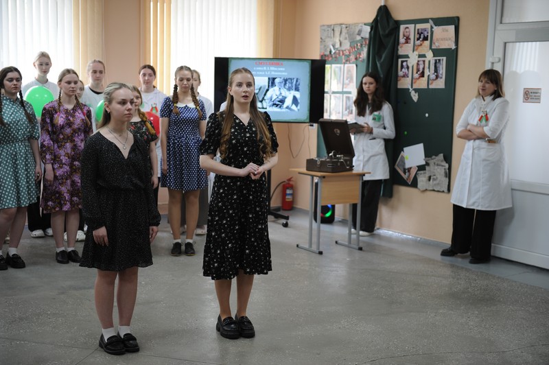 Учащиеся подготовили литературно-музыкальную композицию, где не только исполнили песни военных лет, но и познакомили с историей их создания.