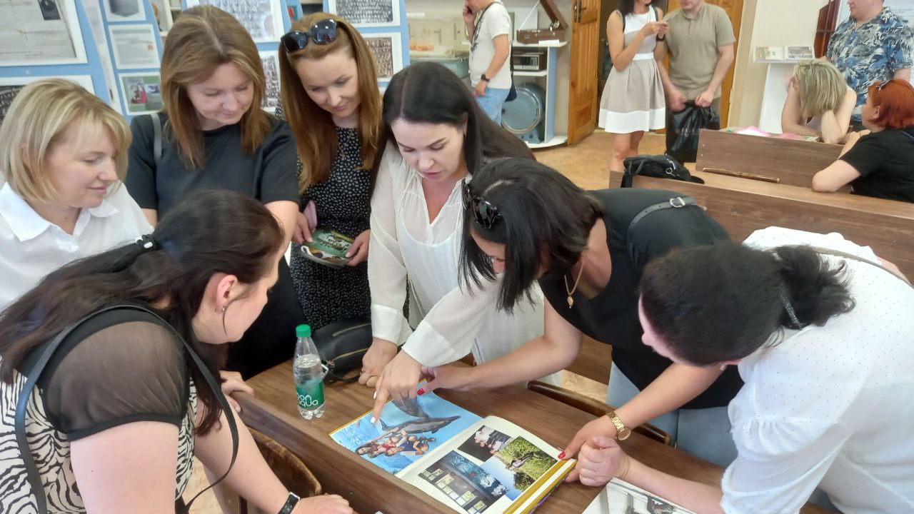 Экскурсию по музейной комнате для них провел Владимир Константинович Заремский. Там рассматривали фотографии прошлых лет, находили себя, смеялись, оставили памятную запись.