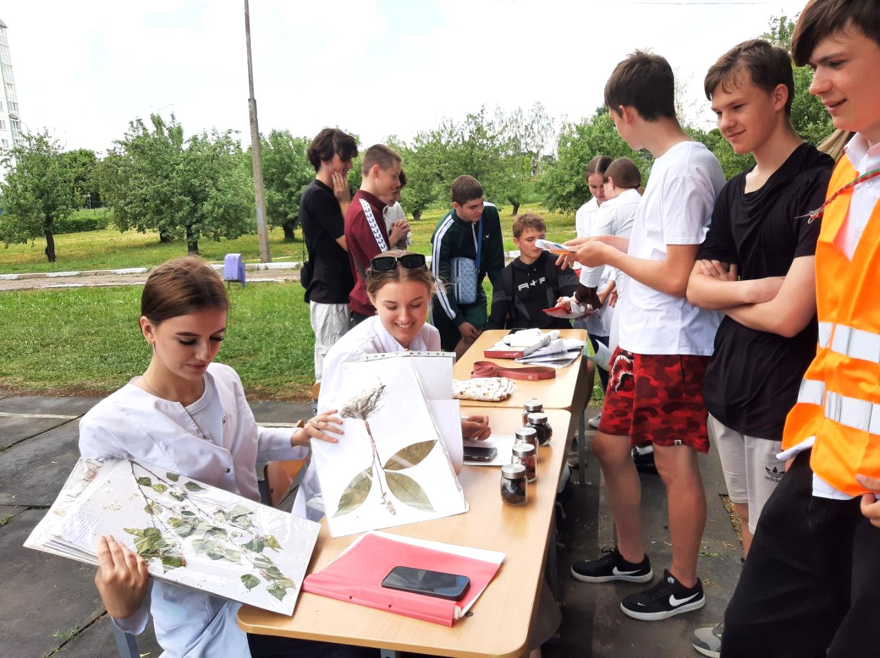 Волонтеры в ходе мероприятия знакомили школьников с некоторыми правилами оказания первой медицинской помощи. Рассказывали о лекарственных и ядовитых растениях, демонстрируя гербарии, загадывая загадки, давая попробовать засушенные ягоды смородины, земляники, малины, шиповника, из которых можно заваривать лечебные чаи