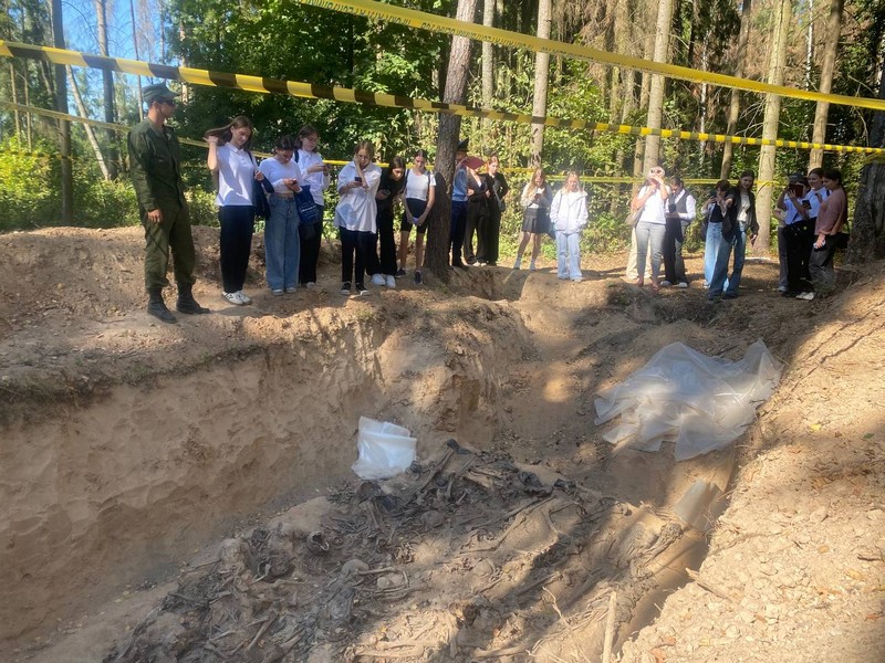 Учащиеся ознакомились как с уже осмотренными местами гибели людей, так и с теми раскопами с жертвами войны, в которых еще не полностью завершена расчистка останков и ведутся следственные действия.