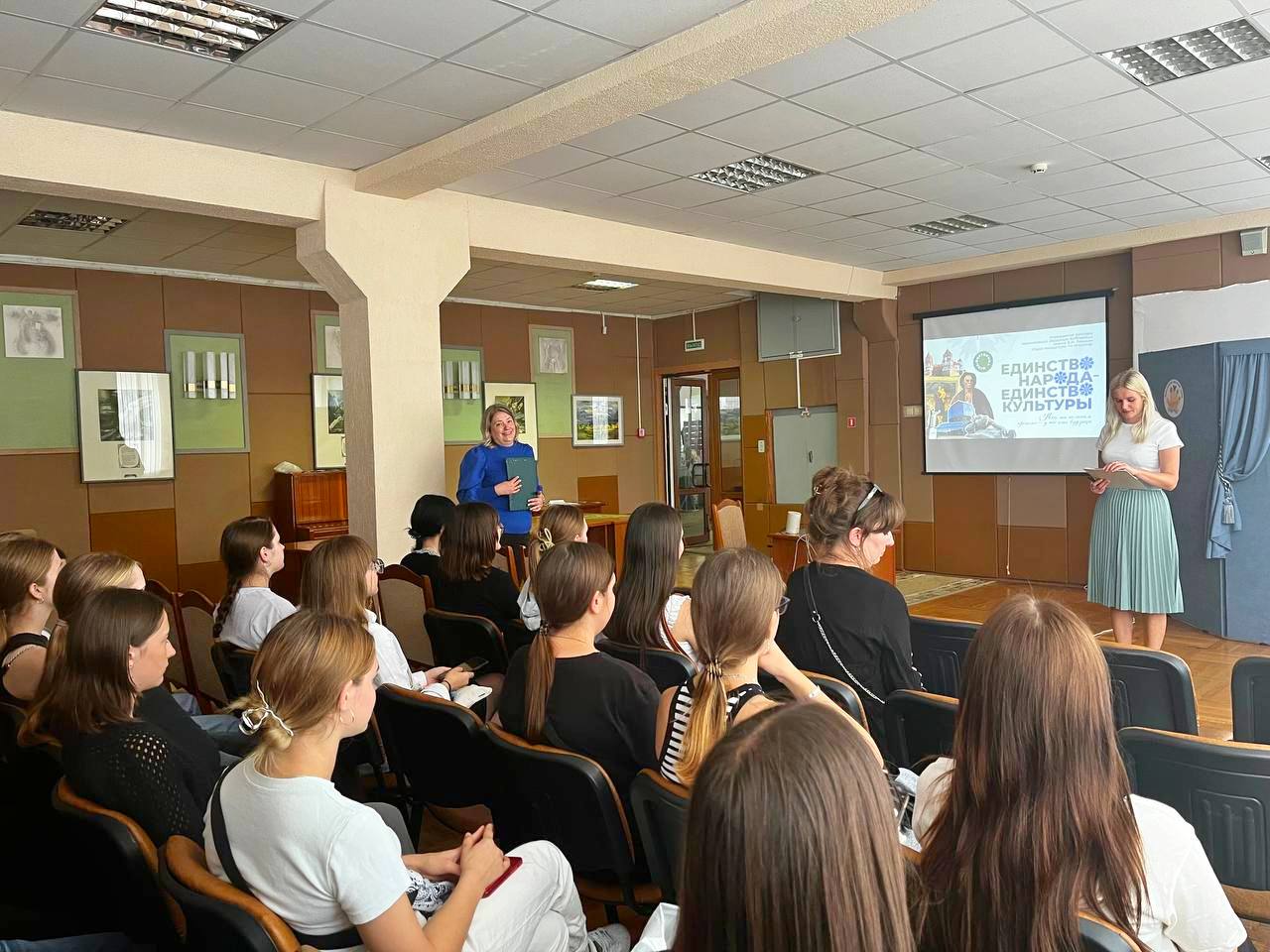 Группа 1МДД24 совместно с куратором Гончарой Д.Д. посетили мероприятие, посвященное Дню народного единства «Единство культуры – единство народа», организованное сотрудниками Могилевской областной библиотеки им. В.И. Ленина.