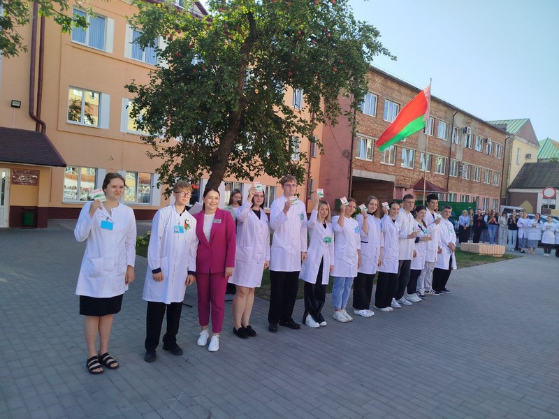 В торжественной обстановке молодежи были вручены билеты членов общественного объединения «Белорусский республиканский союз молодежи» и Республиканского общественного объединения «Белая Русь».