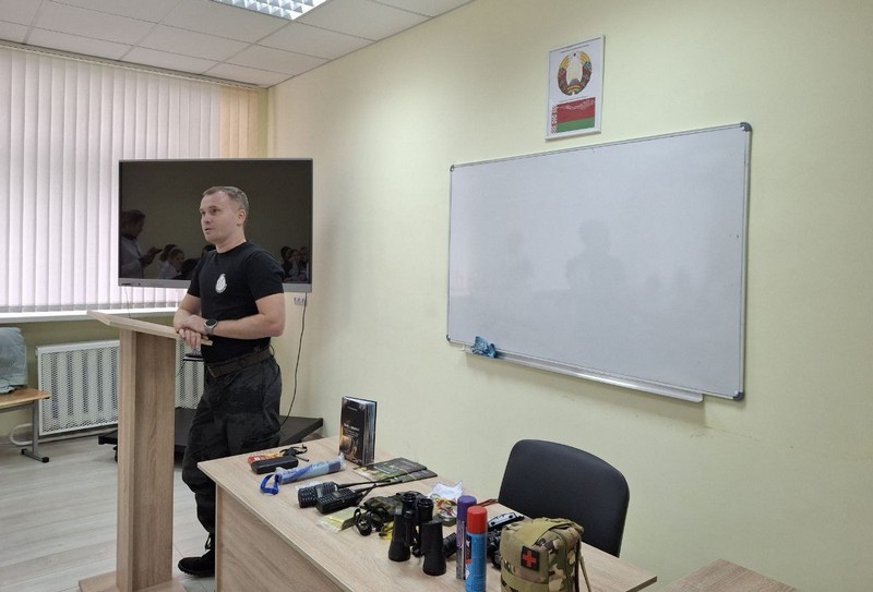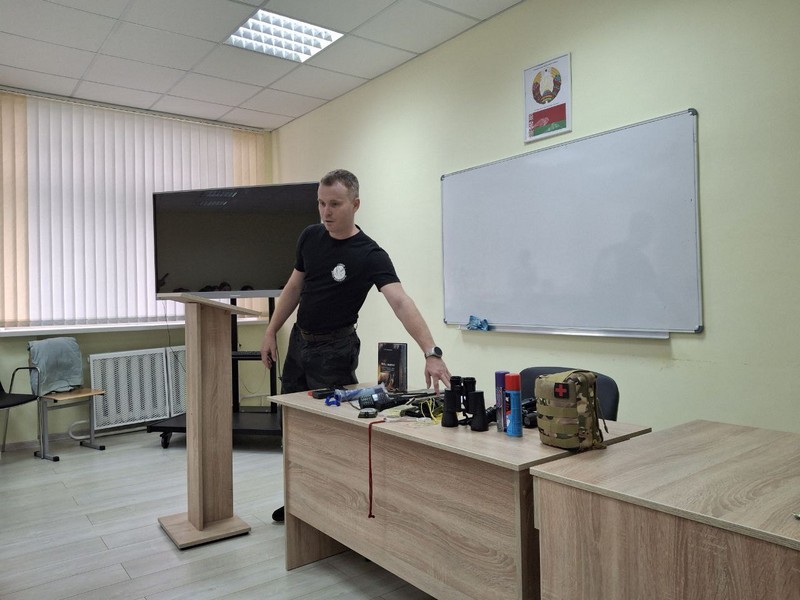 Учащиеся с заинтересованностью подключились к диалогу и узнали о мерах безопасности в лесу и в городе. Поисковик также показал ребятам необходимое оборудование для того, чтобы выбраться живым из леса в тёмное время суток, и которое поможет ориентироваться на местности.