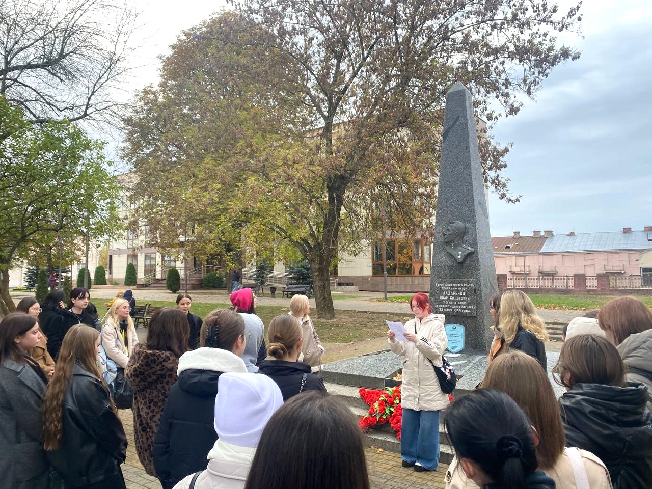С целью воспитания патриотизма современной молодежи 22 октября проведен кураторский час, в ходе которого ребята узнали интересную информацию о настоящем герое нашего города. Учащиеся группы 1МДД24, совместно с куратором Гончаровой Дианой Демьяновной, и 1МДД23, с куратором Супешковой Илоной Геннадьевной, посетили могилу в самом центре города, где он был перезахоронен после освобождения Могилева 28 июня 1944 года.