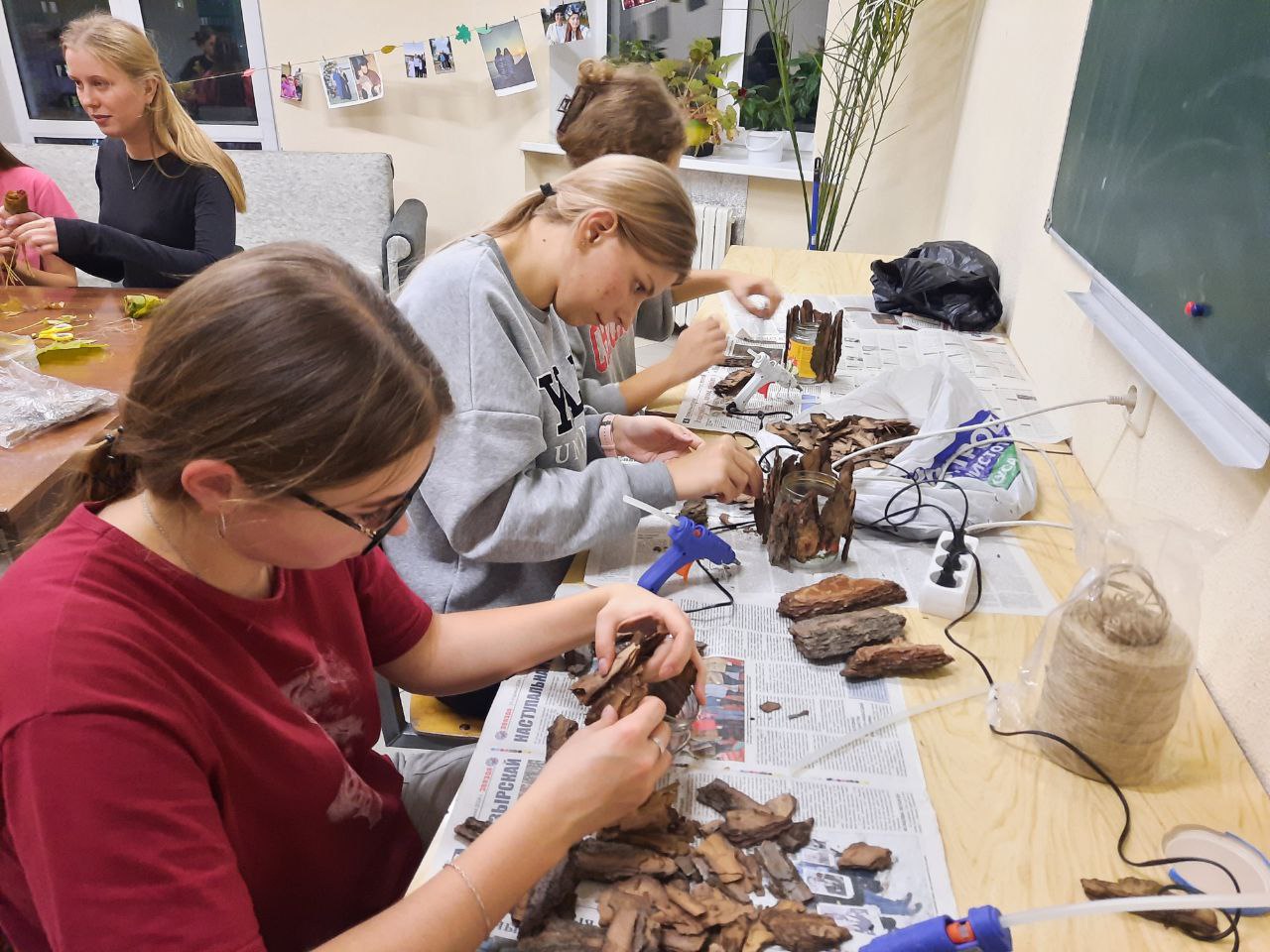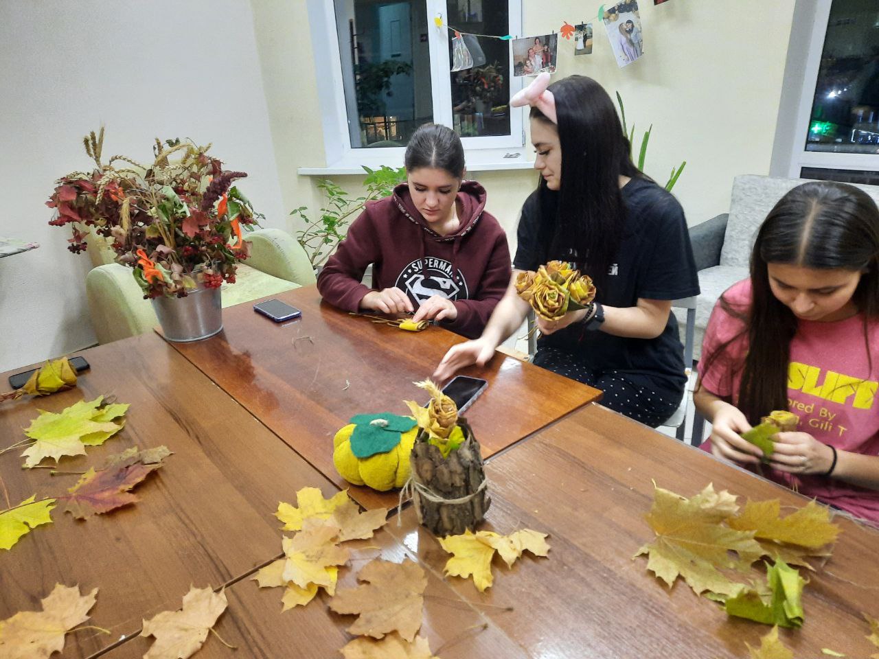 Вооружившись разнообразными природными материалами: листвой, шишками, корой деревьев, мхом, сухоцветами, гроздьями калины и рябины, физалисом, девушки проявили в очередной раз свою индивидуальность и создали оригинальные и неповторимые предметы интерьера.