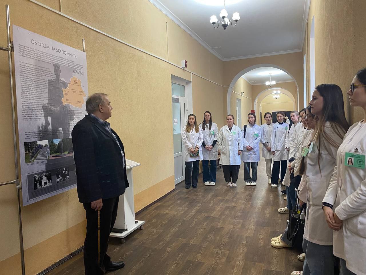 Около музейной комнаты, где расположены стенды, посвящённые геноциду белорусского народа в годы Великой Отечественной войны и стендов в учебном корпусе № 4, посвященных Великой Отечественной войне, ребята больше узнали о военных годах. Заремский Владимир Константинович рассказал учащимся о многих доказанных фактах геноцида белорусского народа военного и послевоенного периодов, о принятом в январе 2022 года Законе «О геноциде белорусского народа» и некоторых мероприятиях Государственной программы «Увековечение памяти о погибших при защите Отечества» на 2021–2025 гг. Рассказал много малоизвестных фактов, которые приводили в ужас.