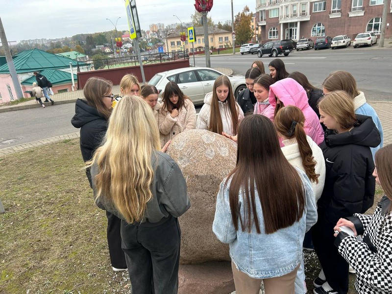 Группа 5СД24 вместе с куратором Осиповской Т.Е. посетили памятный знак «В память о евреях Могилева – жертвах нацизма». На камне изображены отпечатки ладоней всех возрастов, прикоснувшись к ним можно ощутить какую боль и страдания претерпевали люди, находясь в гетто.