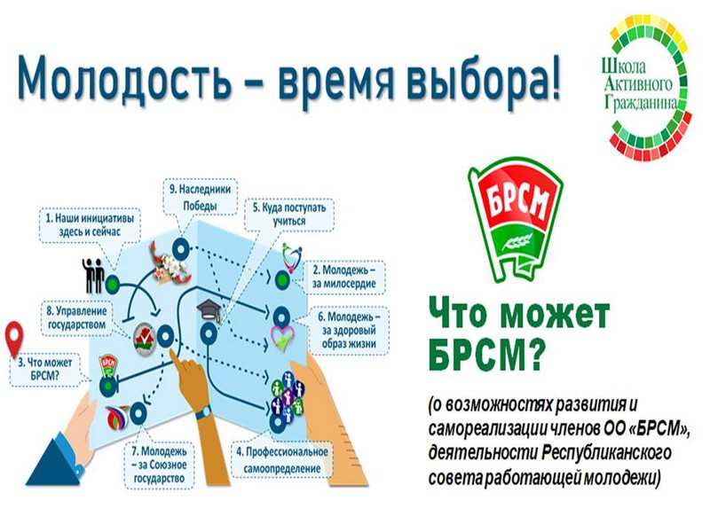 ОО «БРСМ» стимулирует молодых людей занимать активную жизненную позицию и, создавая социальные лифты, предоставляет юношам и девушкам широкий спектр возможностей.