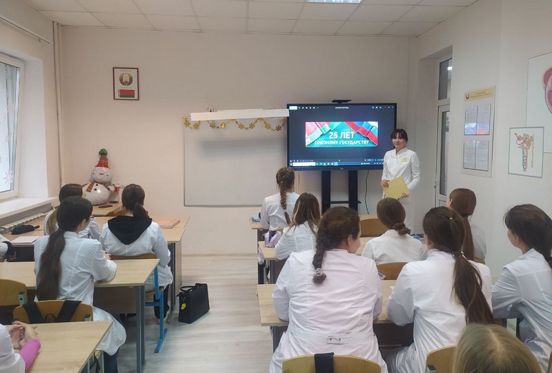 10 декабря в Могилевском медицинском колледже во всех учебных группах прошел единый урок «Союзное государство. 25 лет вместе», посвященный 25-летию подписания Договора между Российской Федерацией и Республикой Беларусь «О создании Союзного государства».