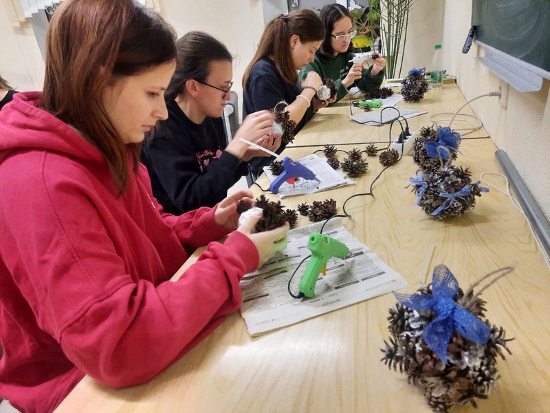 Вот и в стенах общежития №1 Могилевского медицинского колледжа весь декабрь на занятиях объединения по интересам «Рукотворушка» под руководством Марии Петровны Гуркиной ребята с большой любовью и радостью создают особенные новогодние сувениры, елочные украшения, интерьерные композиции, рождественский декор. Все общежитие погрузилось в волшебную предновогоднюю атмосферу благодаря ярким и красочным декорациям, сделанными учащимися.