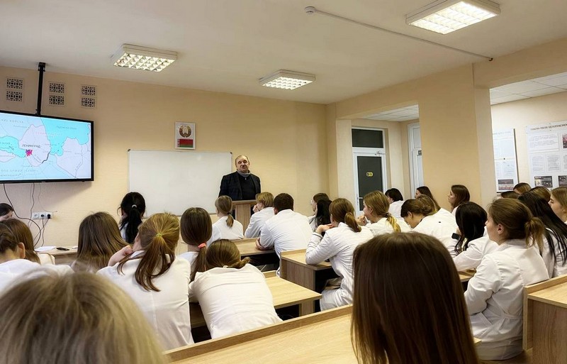 Продолжил урок памяти о городе-герое историк, педагог дополнительного образования Заремский В.К. Он, используя яркие примеры и исторические факты, рассказал учащимся о тех трудностях, которые испытали ленинградцы в осажденном городе. Владимир Константинович обратил особое внимание на то, как на грани человеческих возможностей жители города боролись с врагом, работали на заводах и фабриках для нужд фронта. Много белорусов участвовали в обороне Ленинграда, в том числе и выпускники нашего колледжа предвоенных лет. Также он отметил, что память о подвиге ленинградцев нужно беречь. Нельзя забыть тех детей, женщин, стариков, которые ценой жизни заплатили за Победу в этой страшной войне.