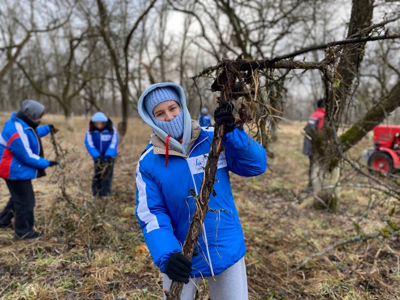 После посещения местной школы отправились на уборку территории сквера имени 50-летия Победы и площади Партизан, где возложили цветы, почтив память погибших в Великой Отечественной войне.