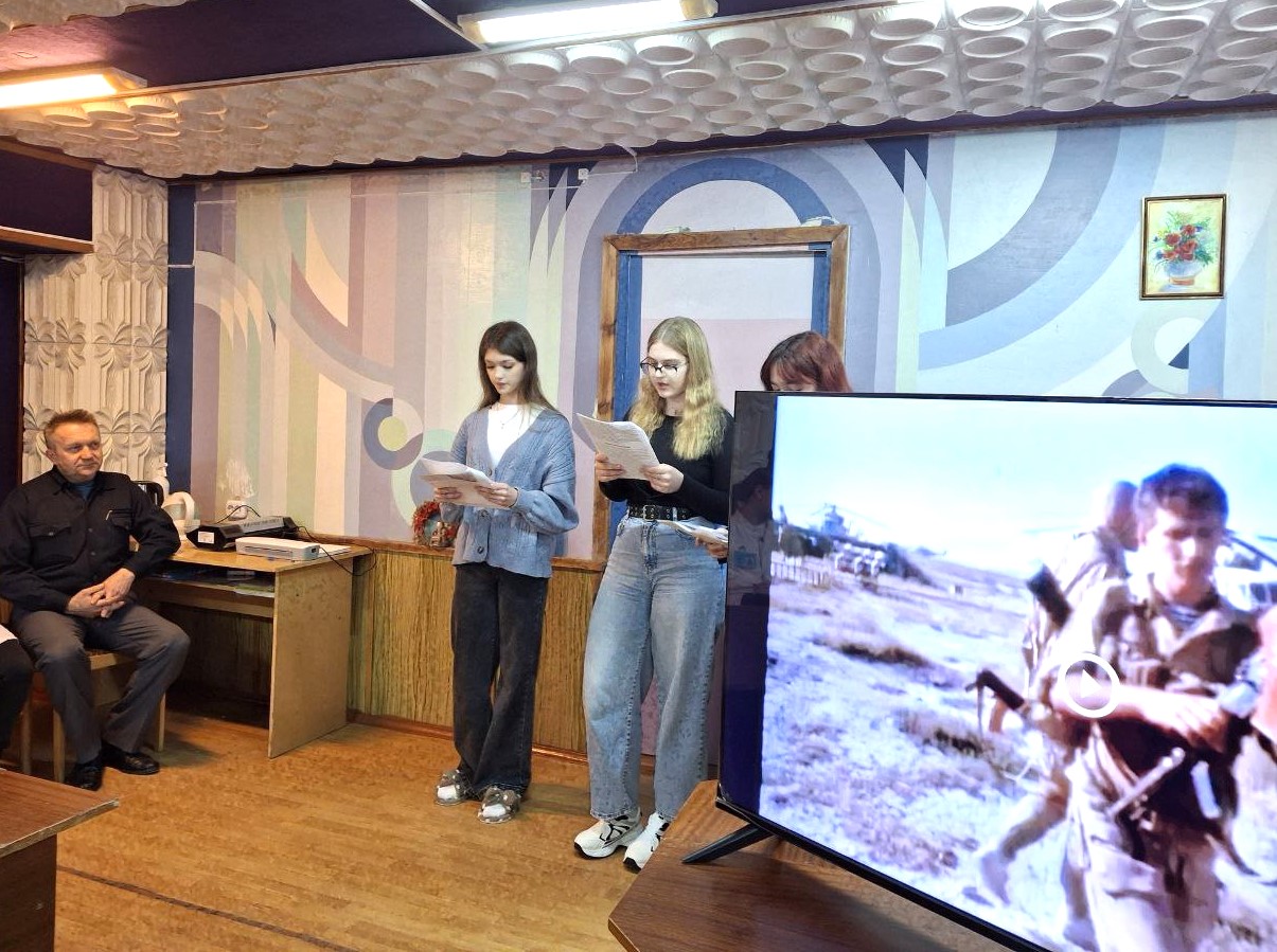 В преддверии Дня памяти всем погибшим воинам-интернационалистам в читальном зале библиотеки колледжа прошел урок мужества «Афганистан – наша память и боль». Сотрудники библиотеки, руководитель по военно-патриотическому воспитанию Щербинов Александр Сергеевич, преподаватель Иванчиков Николай Владимирович организовали и провели данное мероприятие для жильцов общежития № 2 и группы 2ЛД24.