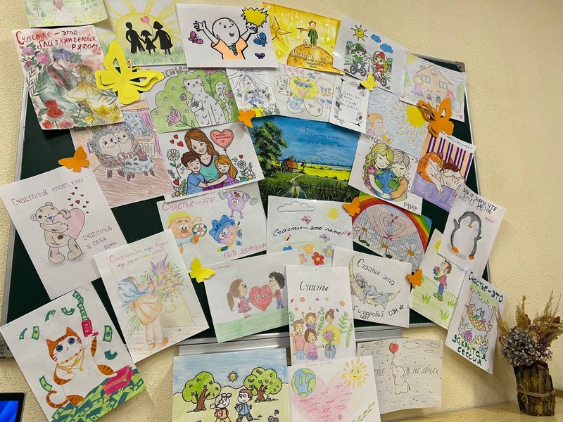Над вопросом «Что такое счастье?» порассуждали и ребята в общежитии №1. Свои ответы на этот вопрос они выразили в рисунках и высказываниях, которые были оформлены в выставку.