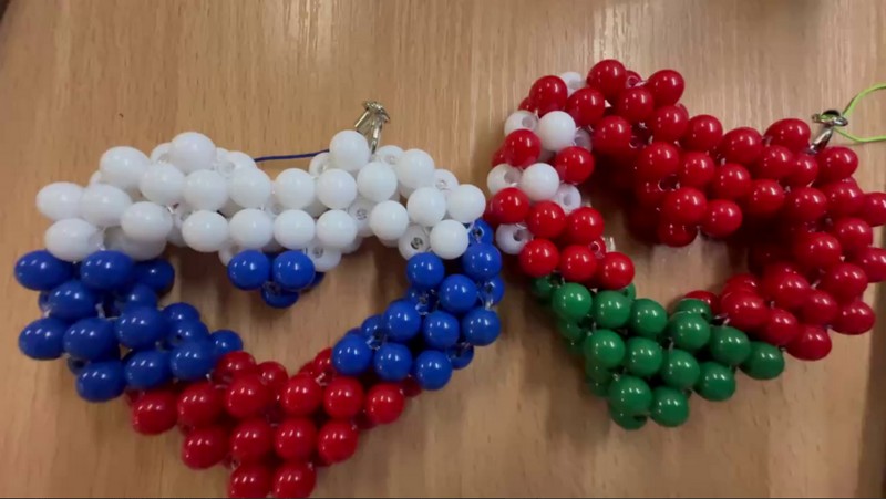 На этом мероприятия не закончились. Вечером члены объединения по интересам «Золотой крючок» пригласили гостей из Санкт-Петербурга к себе на воркшоп «Школа милой феечки» по плетению из бусин. Подумав, ребята решили вместе сплести сердце с элементами белорусской символики.