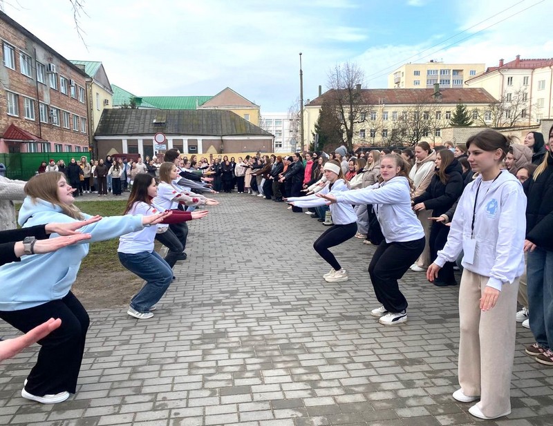 Утро 26 марта в Могилевском медицинском колледже началось с зарядки, в которой с большим энтузиазмом приняли участие студенты из Санкт-Петербургского Акушерского колледжа.
