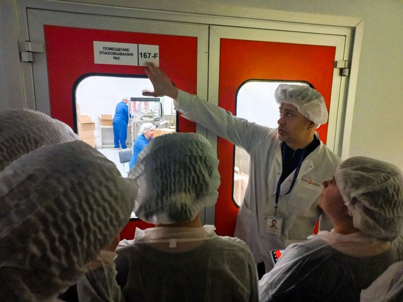 Ребята прошли по цехам заводов, где производят таблетированные формы лекарственных средств и выпуск средств в ампулах и флаконах.