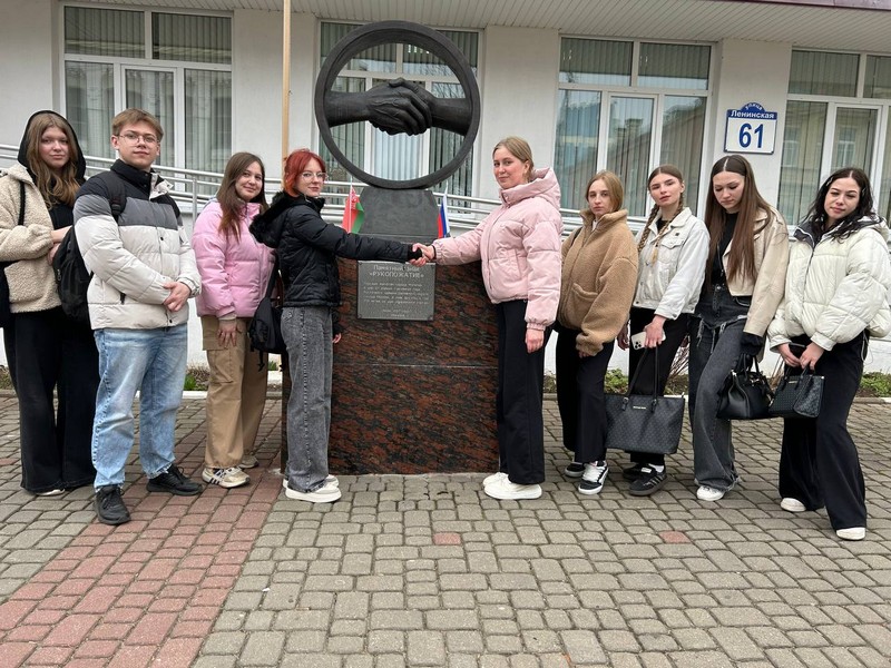 Накануне праздника Дня единения народов Беларуси и России группа 5СД24 вместе с куратором Осиповской Т.Е. посетили памятный знак «Рукопожатие», который подарила делегация московского района «Соколиная гора» в честь дружбы района Москвы Соколиной Горы и Могилева в год 750-летия города.