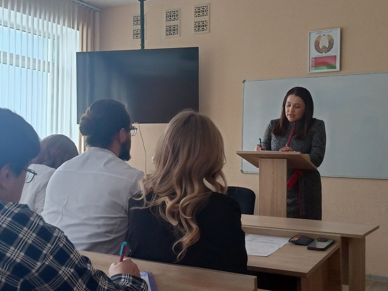 В своем выступлении директор колледжа Рыжков В.В. подвел итог состоявшегося разговора и познакомил с основными аспектами Директив Президента РБ Лукашенко А.Г. В Директиве № 11 Президента РБ рассматриваются аспекты совершенствования функционирования системы органов власти и управления, а также усиления исполнительской дисциплины. Директива № 12 направлена на реализацию основ идеологии белорусского государства, повышение эффективности идеологической работы и актуализацию нормативной правовой базы.
