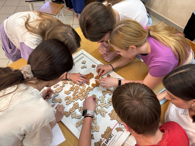 Больше всего участников заинтересовала станция «Собери Беларусь», на которой была представлена спилс-карта Республики Беларусь. Учащимся необходимо было «запомнить» и «собрать» территорию Беларуси из отдельных элементов, не пропуская ни одного города нашей страны.