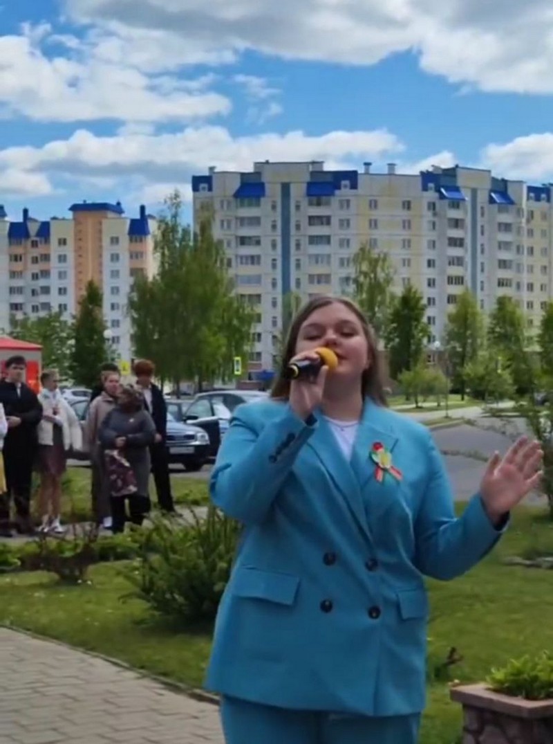 Учащаяся группы 1ЛД23 Елизавета Злынова совместно с другими представителями могилевской молодежи исполнили мелодии Победы для подопечных Дома сопровождаемого проживания.