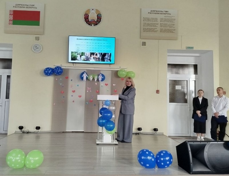 Галина Михайловна рассказала о том, с какого возраста можно вступать в брак, в каких случаях производится снижение брачного возраста, как происходит выездная регистрация брака, привела статистические данные среднего возраста вступающих в брак в Беларуси, динамику вступления и расторжения брака.