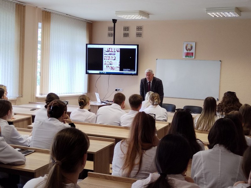 Перед учащимися колледжа выступил выпускник Могилевского медицинского училища, заместитель главного врача Могилевской клинической больницы скорой медицинской помощи Лазаренко Григорий Григорьевич. Он рассказал о суровых годах Великой Отечественной войны, о людях, которые одержали победу над фашизмом, и о том, почему об этом нужно помнить всегда. Особо отметил Григорий Григорьевич героический подвиг медиков в период оккупации г. Могилева немецкими захватчиками, когда они спасали тысячи солдат и мирных жителей.