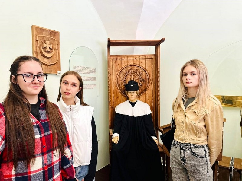 Далее путь экскурсантов продолжился в центр города. На центральной площади возвышается архитектурная доминанта города – Коллегиум иезуитов. Раньше комплекс коллегиума, построенного в XVII веке, состоял из трех зданий: костел, одноэтажная бурса и сам коллегиум, созданный в стиле барокко, но в XIX веке костел снесли.