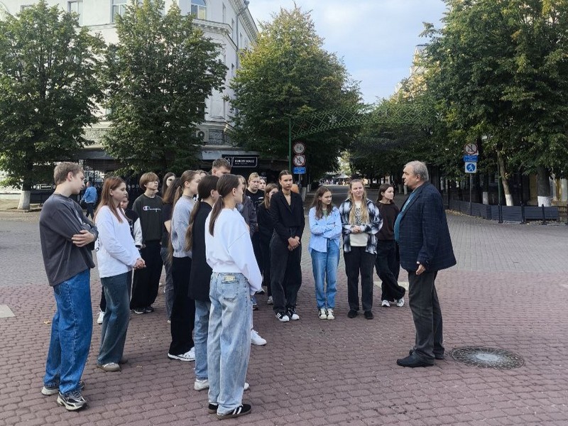Первокурсники посетили современный арт-объект города – Площадь Звезд. Далее прошли мимо ряда старинных зданий XIX - начала XX веков. Завершили прогулку у здания Драматического театра, который является архитектурным памятником конструктивизма.