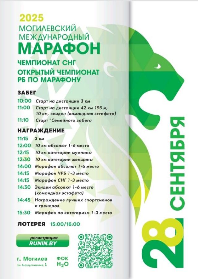 Старт международных легкоатлетических соревнований «Могилевский международный марафон» будет у физкультурно-оздоровительного центра Н2О (ул. Златоустовского, 1).