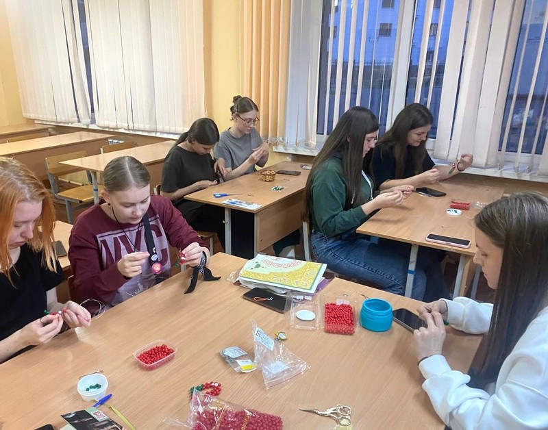 Сначала возникла идея изготовить подвески из бусин в виде сердец в цветах флага Беларуси, которые были вручены жильцам общежития № 2, принявшим участие в спортландии, посвященной Дню народного единства.