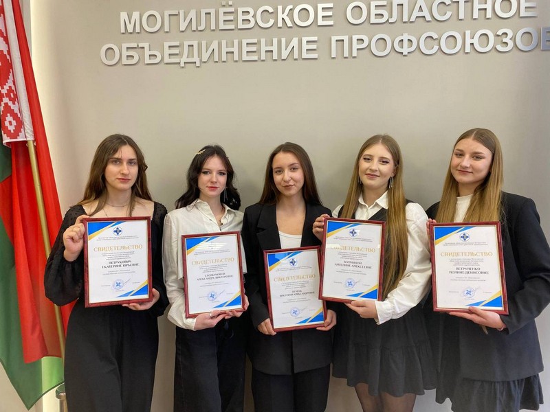 Лучших учащихся Могилевского медицинского колледжа торжественно наградили в Могилевской областной организации Белорусского профсоюза работников здравоохранения за отличную учебу, активное участие в общественной жизни, в том числе профсоюзной. В этом семестре наград были удостоены Ангелина Купчина, Полина Петруленко, Александра Столбунова, Екатерина Петрукович и Виктория Печень.