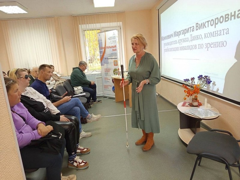 15 октября в центральной городской библиотеке им. К. Маркса состоялся круглый стол «Сердцу виден свет добра», приуроченный к Международному дню белой трости. Мероприятие было организовано совместно с учреждением «Центр социального обслуживания населения Ленинского района г. Могилева».Сотрудники библиотеки медицинского колледжа организовали экскурсию на данное мероприятие для учащихся группы 2МДД24.