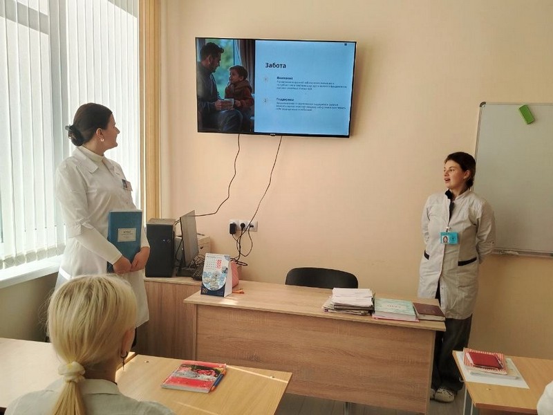 Учащиеся Воробьева Карина и Стефаненко Анастасия подготовили лирическую презентацию, рассказали о важности материнства, ценности семейных отношений. Учащиеся поделились своими семейными историями, вспомнили советы родителей.