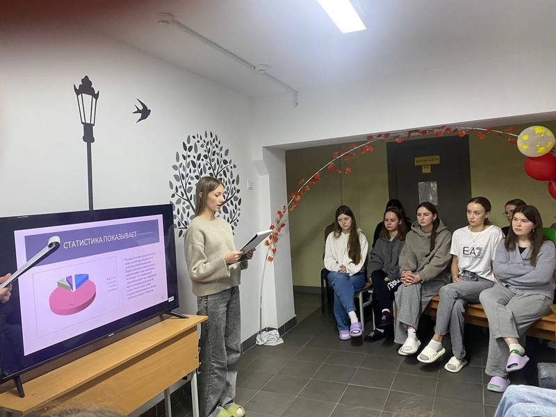 Ведущие мероприятия Вероника Ганжа и Елизавета Ильина рассказали о видах наркотических средств, причинах и последствиях употребления наркотиков, ознакомили со статистикой употребления наркотиков в Республике Беларусь.