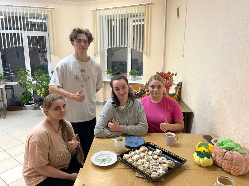 За окном прохлада и шуршание опавшей листвы, а в стенах общежития № 1 Могилёвского медицинского колледжа «поселился» по-настоящему домашний, сладкий и согревающий душу аромат: аромат свежей выпечки с корицей. Это участники объединения по интересам «Адаптер» учатся готовить знаменитые синнабоны.