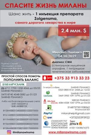 По инициативе председателя совета общежития №2 Хурса Ирины в апреле 2020 года была организована благотворительная акция по сбору денежных средств на лечение от тяжелого генетического заболевания маленькой девочки Миланы Пшенко.