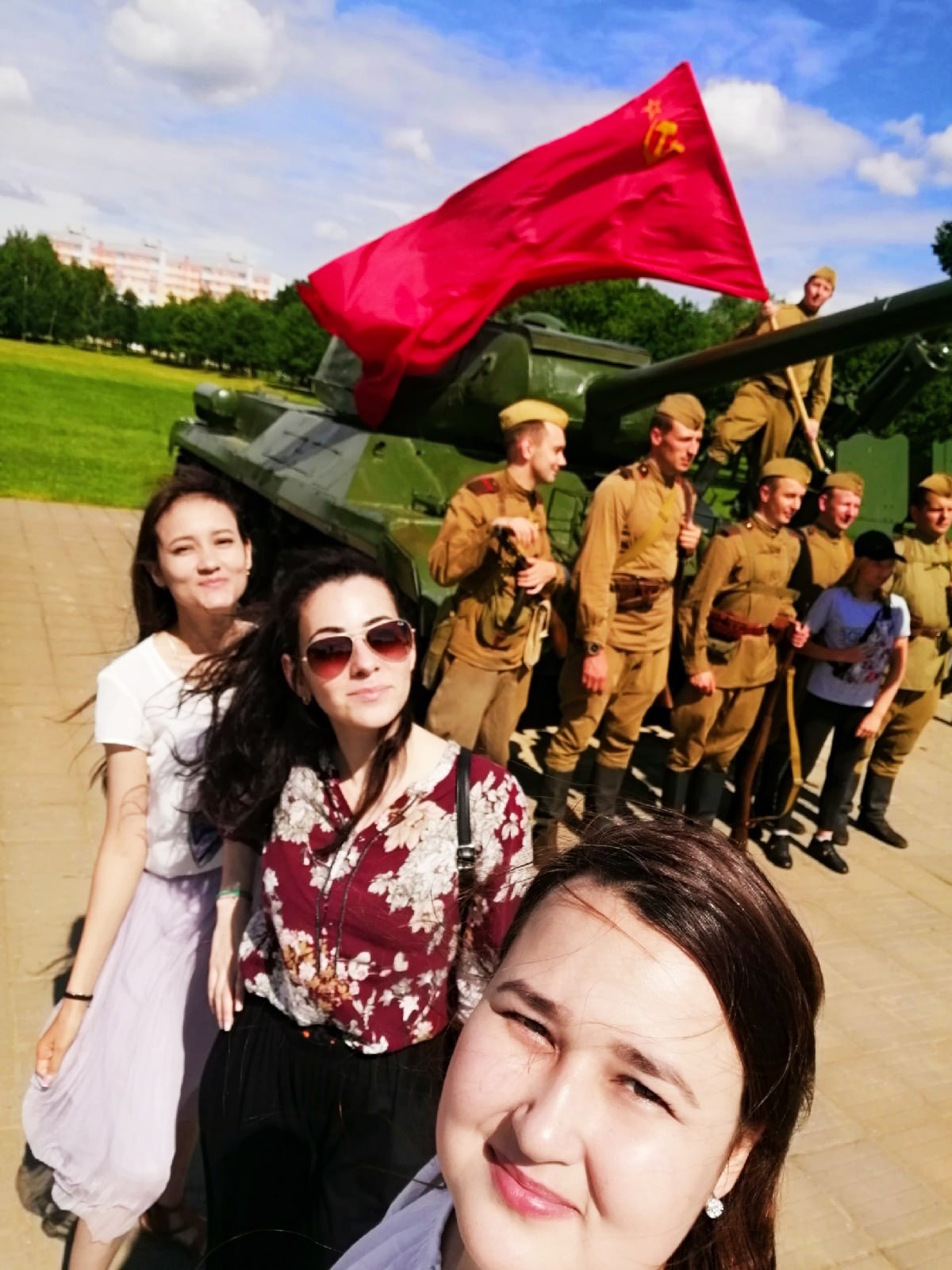 Все с большим интересом посмотрели реконструкцию боёв 1944 года за освобождение деревни Буйничи, а также церемонию передачи советской противотанковой самоходный артиллерийской установки СУ-100.