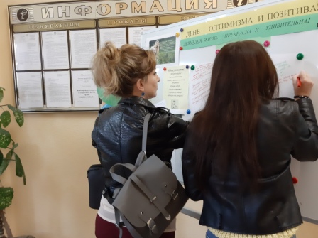 С целью поддержания благоприятного психологического климата 10 сентября в колледже прошла акция «День оптимизма и позитива!», в которой приняли участие педагоги и учащиеся.