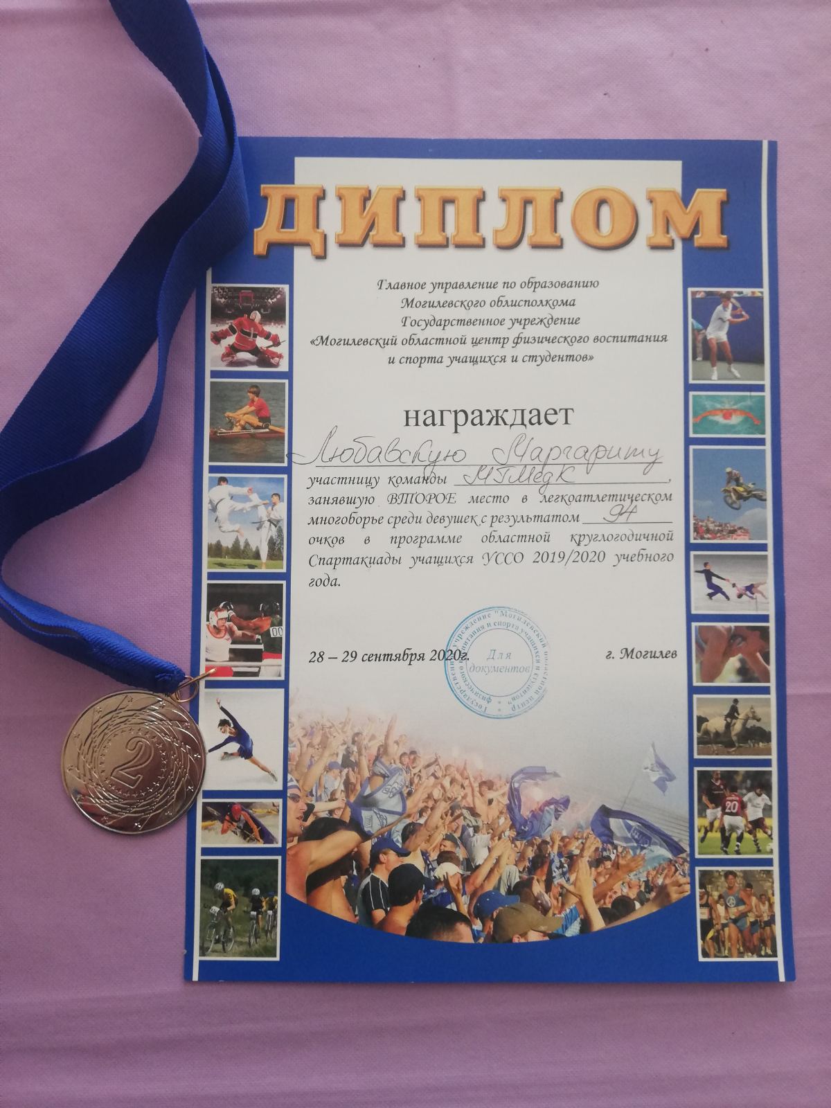 Поздравляем Любавскую Маргариту гр.6Ф20 занявшую 2 место в областной Спартакиаде по легкоатлетическому многоборью среди девушек учащихся УССО.