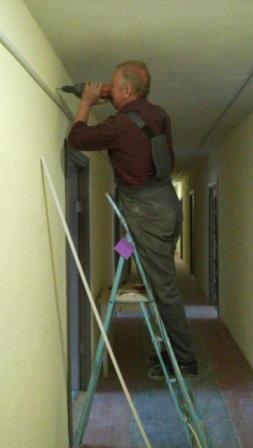 Делали ремонт при помощи умелых рабочих-специалистов колледжа, которыми мы гордимся и благодарим каждого за нелегкий, но благородный труд. Труд, который у всех на виду. Благодаря им учебные аудитории и ухоженные комнаты общежитий приняли учащихся в этом учебном году.