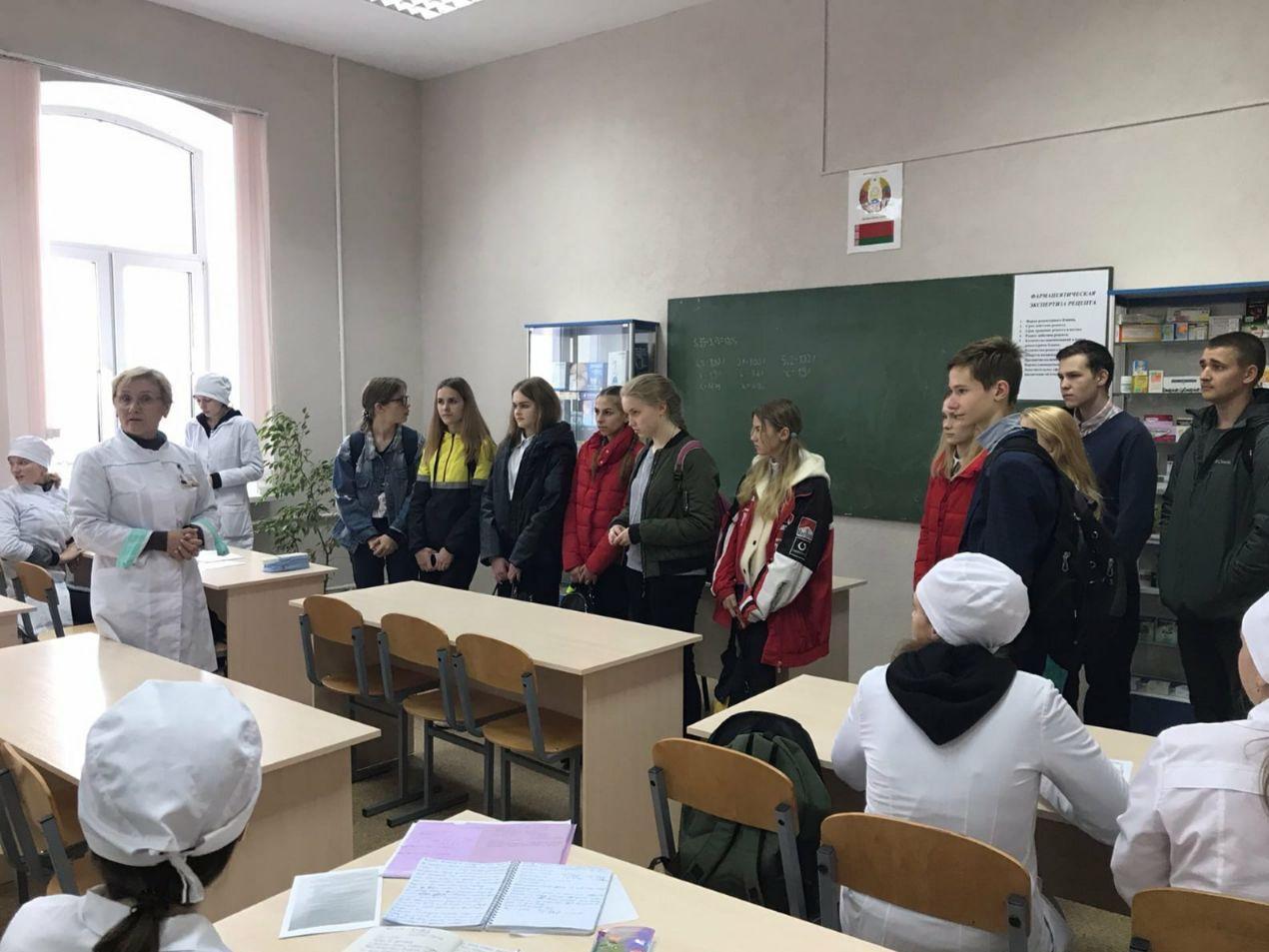 12 октября 2020 года двери колледжа окрылись для учащихся 10 класса химико-биологического профиля ГУО «СШ № 43». Будущих абитуриентов интересовало все, начиная от оснащения лабораторий и заканчивая расписанием и проведением учебных занятий. На все поставленные вопросы отвечала заведующий фармацевтическим отделением Журомская Ирина Петровна, которая провела экскурсию по главному корпусу колледжа, а также разрешила побывать на учебных занятиях.