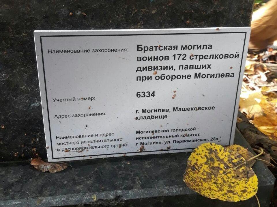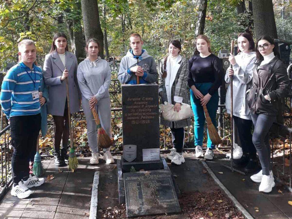 Ребята навели порядок на братской могиле воинов 172 стрелковой дивизии (г. Могилев, Машековское кладбище), павших при обороне Могилева. Убрали территорию захоронения от листвы, веток и мусора. А также произвели забор земли с этого воинского захоронения для пополнения экспозиции «Дорога памяти» на территории музейного комплекса в военно-патриотическом парке культуры и отдыха Вооруженных Сил Российской Федерации «Патриот».