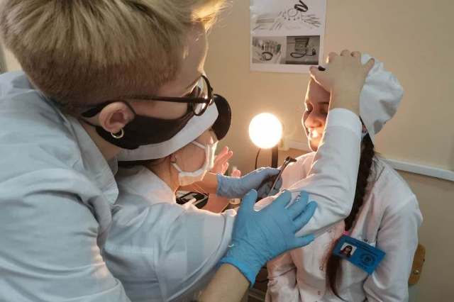 Учащиеся смогли приблизиться к реальным условиям работы кабинета врача-оториноларинголога: ознакомились с оснащением кабинета, изучили оториноларингологический инструментарий, предназначенный для диагностических и оперативных вмешательств на ухе, носе и его придаточных пазухах, в глотке и гортани. Смогли провести осмотр пациента, выполнить практические манипуляции с использованием симуляционного оборудования: исследование восприятия шепотной и разговорной речи, смазывание глотки различными лекарственными средствами, промывания ушей при серных пробках. Также учащимся был представлен учебный фильм «Операции в оториноларингологии».
