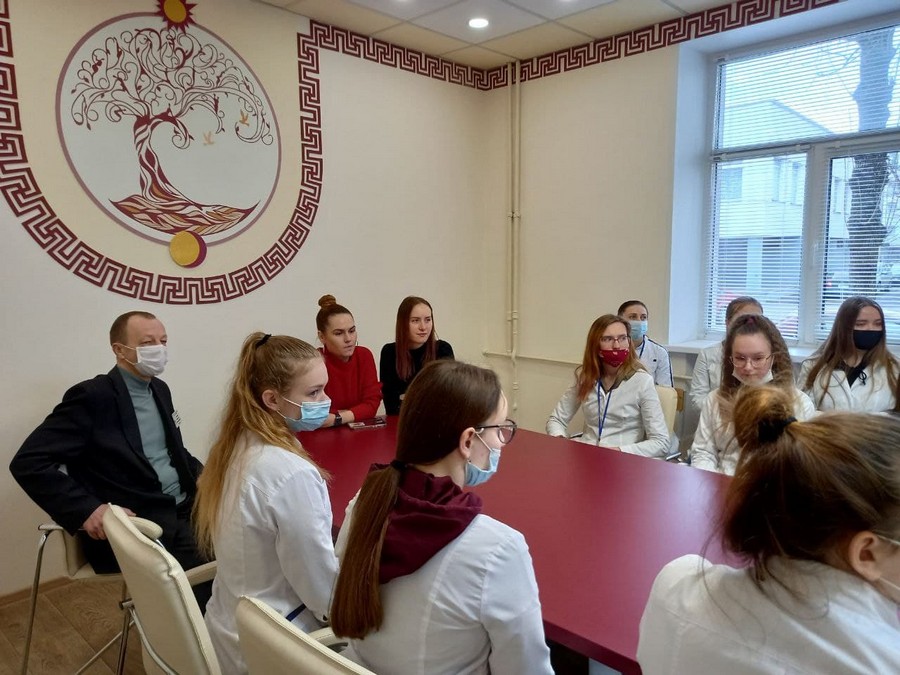 8 апреля в нашем колледже состоялась диалоговая площадка на тему «На шаг впереди». В мероприятии приняли участие директор колледжа Владимир Владимирович Рыжков, заместитель директора по воспитательной работе Светлана Николаевна Костусева, начальник отдела по воспитательной работе с молодежью Ольга Андреевна Никитенко, выпускницы колледжа - процедурная медсестра диспансерного отделения УЗ «Могилевская областная психиатрическая больница» Валерия Алексеевна Мороз, медсестра-анестезист реанимационно-анестезиологического отделения УЗ «Могилевский областной онкодиспансер» Лидия Константиновна Шуфелева, преподаватель Инна Ивановна Сенченко, учащиеся группы 3СД20 специальности «Сестринское дело».