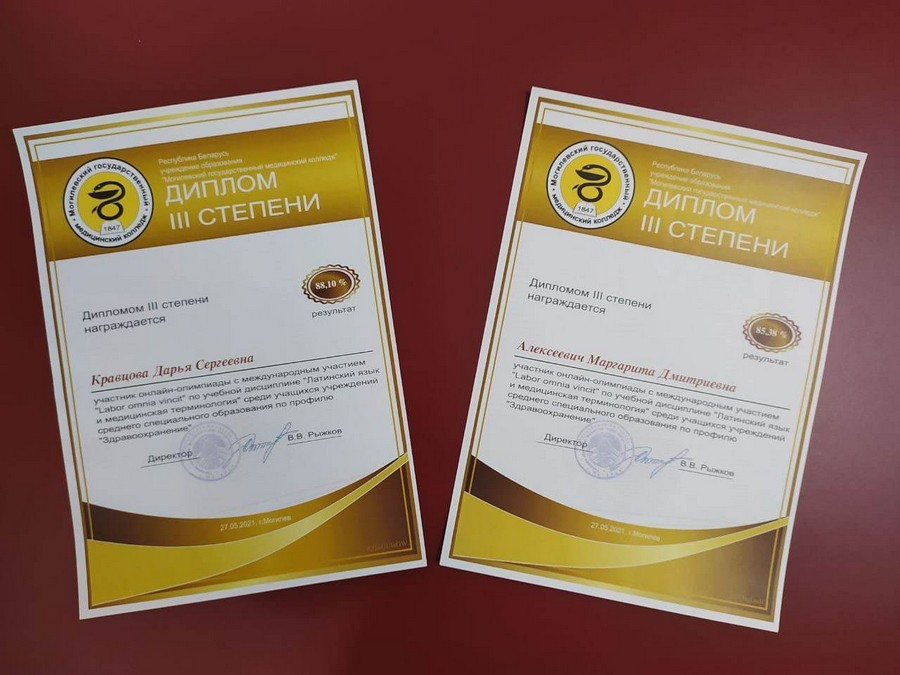 27 мая на базе Могилевского медицинского колледжа была организована и проведена онлайн-олимпиада с международным участием по учебной дисциплине «Латинский язык и медицинская терминология» среди учащихся учреждений среднего специального образования по профилю «Здравоохранение».