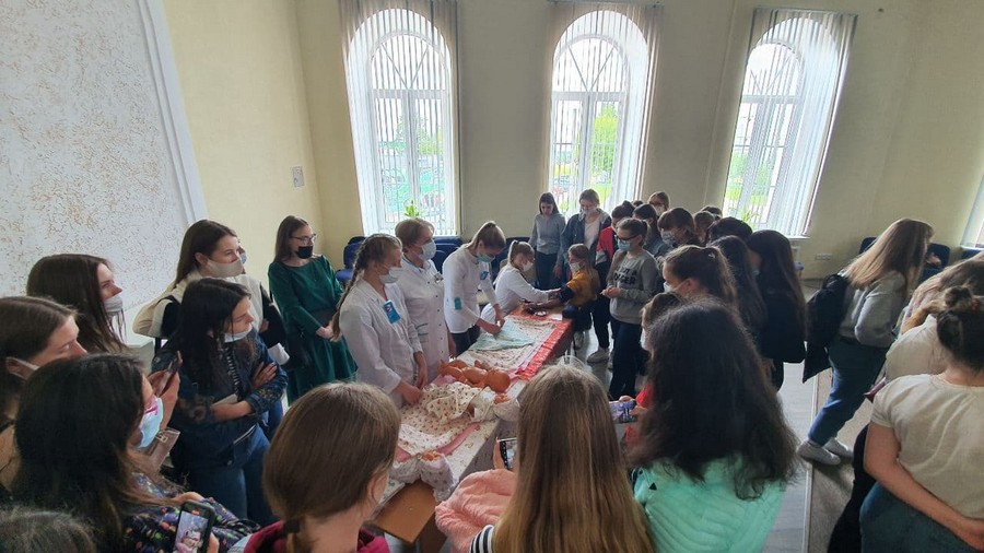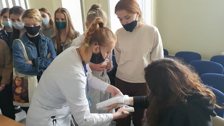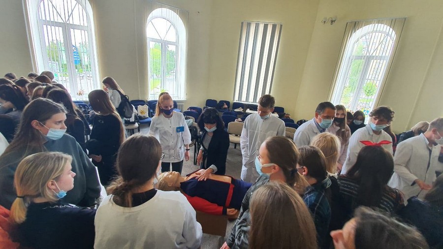 В рамках празднования Международного дня защиты детей 1 июня Могилевский медицинский колледж распахнул двери для учащихся УО «Могилевский государственный областной лицей №3»: ребята получили возможность не только прочувствовать доброжелательную атмосферу колледжа и насладиться величием стен первого учебного корпуса, но и задать интересующие вопросы, увидеть методику оказания первой медицинской помощи, научиться измерять артериальное давление и отработать полученные знания на практике, используя современные ростовые манекены, муляжи, фантомы. Преподаватель учебной дисциплины «Хирургия и основы травматологии» Майстров А.М. подробно объяснил ребятам, как проводить непрямой массаж сердца и искусственную вентиляцию легких, какие способы наложения повязок бывают и при каких кровотечениях используют жгут.