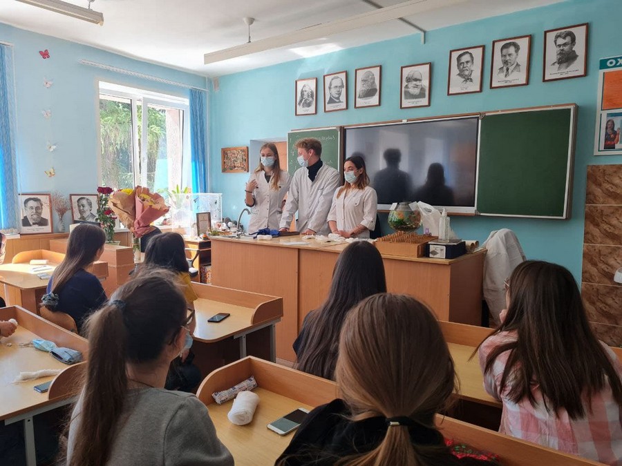 2 июня учащиеся группы 4лд19 с преподавателем учебной дисциплины «Первичная медицинская помощь» Коротиной А.А. уже на базе лицея продемонстрировали навыки и обучили учеников оказанию скорой медицинской помощи на месте происшествия с использованием подручных средств при травмах конечностей и головы, ожогах, отморожениях.